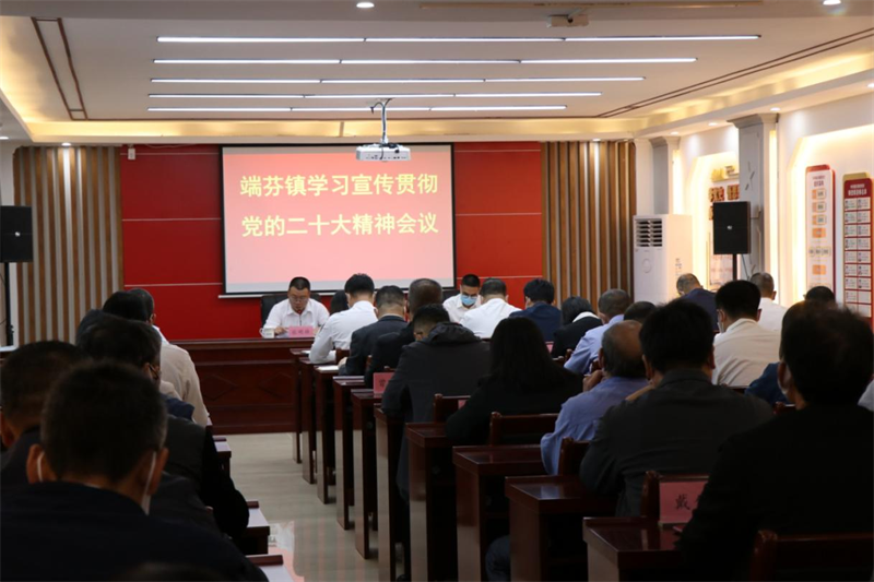 近期,端芬镇在镇委党校召开学习宣传贯彻党的二十大精神会议,传达学习党的二十大精神,研究部署我镇学习宣传贯彻意见。镇领导班子成员、各办负责人、事业单位负责人、各部门单位党组织书记、各村(社区)书记参加会议。