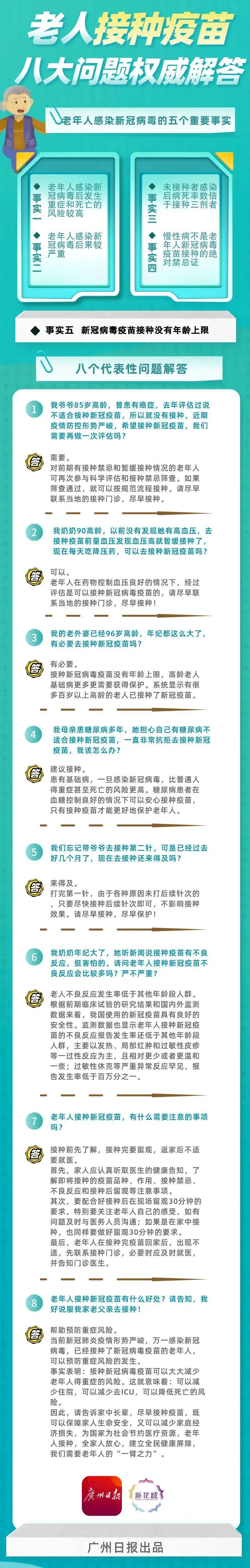 问:有群众关心,家中老人80多岁了,很少出门,有必要打疫苗吗? 答:此次工作方案提出,加快提升80岁以上人群接种率,继续提高60—79岁人群接种率。 我们在基层调研中发现,尚未打疫苗的老年人群往往有三方面情况:一是对新冠病毒感染的风险意识不足,觉得自己日常活动范围有限,接触病毒的机会比较少;二是有些本身有基础性疾病,担心疫苗接种会发生异常反应,对接种有顾虑;三是部分老年人存在行动失能或半失能情况,因此感到接种不方便。 针对这三方面问题,国务院联防联控机制出台了一些办法,其中首要的是提高大众和老年人对接种疫苗的认识。老年人基础疾病比较多,如果感染新冠病毒,发展为重症、危重症甚至死亡的风险较大,因此老年人接种新冠病毒疫苗的获益是最大的。疫苗是安全有效的。诚恳呼吁广大老年朋友们尽快行动起来,积极接种新冠病毒疫苗,为自己的健康护航。 问:有哪些更便利的措施方便老年人接种? 答:《加强老年人新冠病毒疫苗接种工作方案》从健全机制、做好摸底、优化服务、细化宣传等方面做了部署和推进。 在优化预防接种服务方面,将进一步提升预防接种服务的温度和便利性。在前期经验基础上,继续开设老年人接种绿色通道。同时开设临时接种点、流动接种车,方便老年人接种。对一些失能和半失能老人,将安排有丰富诊疗和接种经验的医务人员,上门为老年朋友们提供接种服务,用良好的、有温度的工作服务,让老年人放心接种。另外,医务人员在接种过程中会耐心回答老年朋友们的疑问,会对老年人健康状况进行评估,确保接种安全。 问:当前我国老年人疫苗接种情况如何?下一步有哪些工作重点? 答:我国老年人接种新冠病毒疫苗的总体情况还可以,但在不同年龄层次有差异,80岁以上的老年人接种率还不是很高。所以一方面要整体提高老年人的接种率,一方面要重点推进和提升80岁以上老年人的接种率。 截至11月28日,我国有90.68%的60岁以上老年人接种了新冠病毒疫苗,86.42%完成全程接种。我国80岁以上老年人新冠病毒疫苗的全程接种率为65.8%。 下一步,我们将认真贯彻方案要求,指导各地周密组织部署,优化接种服务,做好新冠病毒疫苗加强免疫和老年人的接种工作。