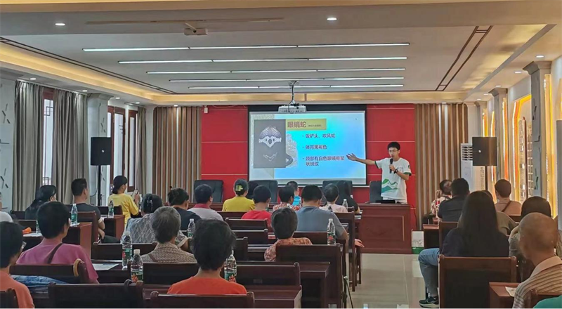讲座活动由广州医科大学学生进行专业讲解,通过幻灯片(PPT)插入图片直观展示蛇类的外观特征、生活习性、蛇毒分类及咬伤后果等、同时还讲解本地蛇类常见分布区域、预防策略及遭遇毒蛇咬伤后的紧急自救措施、蛇伤解毒药物及其使用等重要内容。该活动致力于让居民能够准确辨别蛇种,掌握蛇咬伤的