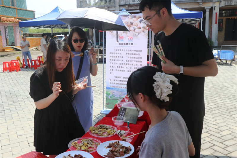 端芬镇在梅家大院开展选调生公益集市活动,现场设置农产品展示区、游戏区域和鳗鱼制作教学,将端芬特色产品和文化“亮”出来、“展”出去。