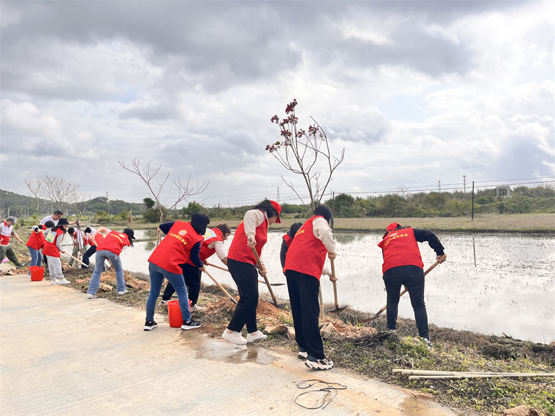 结合绿美广东生态建设目标,台山市妇联联合端芬镇组织开展“同植幸福树 共建绿美家”植树活动,在林业专家指导下,50余名巾帼志愿者们分工协作,挥锹培土、围堰浇水,在省典型村西廓村栽种紫花风铃木,活动融入生态知识科普环节,倡导家庭践行低碳生活理念,为绿美台山建设注入“她力量”。