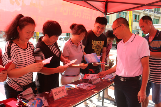 活动悬挂着宣传横幅,设置宣传咨询台,摆放着各类宣传资料。宣传工作人员主动向群众派发扫黑除恶、禁毒宣传资料以及绿植和多肉植物等宣传小礼品,并简明讲解扫黑除恶、禁毒的相关知识,突出开展扫黑除恶专项斗争和全民禁毒工程工作的目的、意义,呼吁群众善于提高自我防范意识和自我保护能力,并鼓励他们踊跃举报线索,勇敢维护自身利益,真正参与到与黑恶势力、与毒品作斗争的行动中来。活动现场气氛热烈,过往群众闻声纷纷驻足,围拢过来了解扫黑除恶、禁毒的相关知识,令宣传咨询台前热闹非凡。骄阳似火阻挡不了群众参与的热情。
