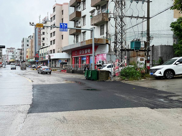 道路建设体现地方的现代化水平,也寄托群众对美好生活的向往。广海镇北门牌楼十字路口往川岛方向路段(京东家电前)路面破损较为严重,坑坑洼洼影响出行安全,群众对此意见颇大。坚持情为民所系,广海镇政府当机立断开展路面修复工程,对约100平方破损路面铺设沥青,恢复路面平整,解决群众出行烦心事,守护群众“脚下安全”,提升群众交通安全感。