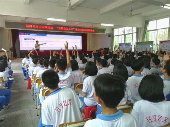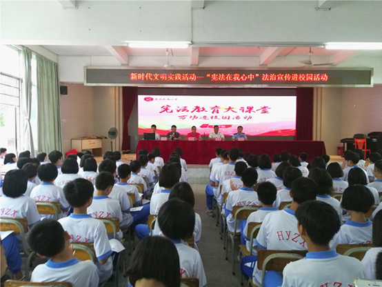 为大力弘扬宪法精神,推动宪法精神进校园和进一步提升校园师生对扫黑除恶专项斗争工作的知晓度及禁毒、反邪教意识,5月21日下午,海宴综治办联合海宴司法所、派出所在海宴中学开展新时代文明实践活动——“宪法在我心中”暨扫黑除恶、禁毒法治宣传进校园活动。