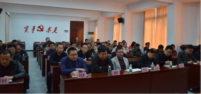 2019年2月12日上午,镇委书记谢福海主持召开党委(扩大)会议,传达学习市委十三届八次全会和台山市2019年开年工作会议精神,镇领导班子成员、各村(居)委会支部书记、各办(局)负责人共50多人参加会议。