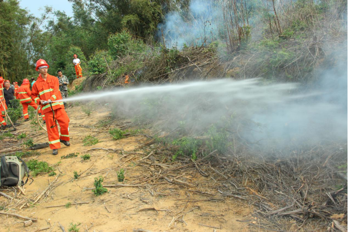 2018年11月7日,四九镇专职消防队、应急分队在车蓢村委会李坑山扑灭山火,以真实场景进行实战演练,提高应急队员们抢险救灾的能力。