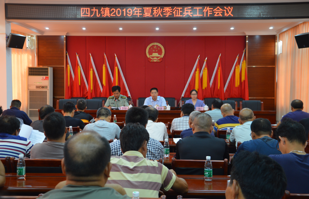 为推进今年征兵工作的扎实开展,7月19日,四九镇召开夏秋季征兵工作动员会,镇委书记谢福海、镇委委员吴伟润、副镇长候选人陈佩文出席会议,镇征兵工作领导小组成员、各村(居)委会书记(主任)、民兵营长共60多人参加。