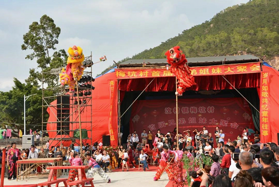 2月10日,五乡白沙村举办了兄弟姐妹大聚会活动。醒狮、出嫁女登台表演节目气氛热烈,乐也融融。
