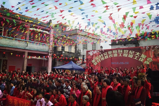 2月9日,大担村委会举办“兄弟姐妹世纪大聚会暨村容改造工程竣工庆典”。村容村貌的改造完成为建设新时代文明新风奠定基础,让习近平新时代中国特色社会主义思想深入人心,共同推动乡村振兴战略实施。