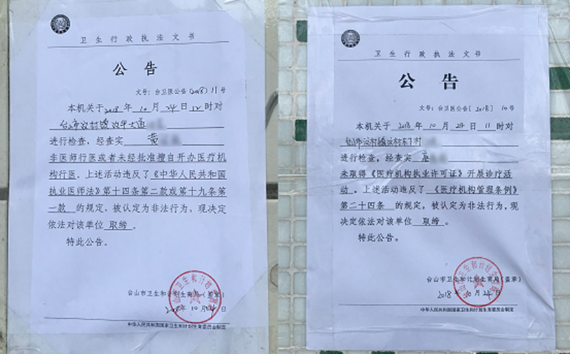 1024日上午,由市卫监所牵头,镇卫计局、汶村派出所、汶村中心卫生院、海宴食药监所联合开展打击非法行医执法行动。执法组根据群众提供的线索,分别到汶村东下村和汶华大道,查处两家“黑诊所”。各部门分工合作,对“黑诊所”内设施设备、人员资质、药品等逐一进行检查。