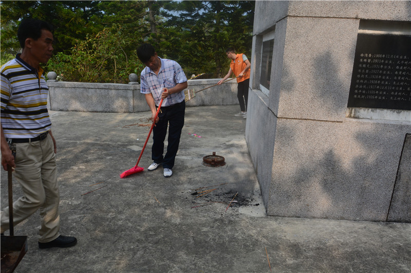 参加活动的人员先后为烈士墓进行清洁打扫,并向烈士墓碑敬献花圈, 表达崇敬之意。在庄严而凝重的气氛中,全体人员排着整齐的队伍站在烈士纪念碑前,向革命烈士鞠躬默哀,深切缅怀革命先烈为民族解放、国家振兴所做的丰功伟绩。