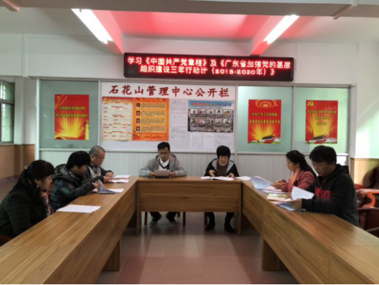 市城管局石花山党支部组织党员学习《中国共产党章程》第三十二条、第三十三条以及《广东省加强党的基层组织建设三年行动计划(2018-2020年)》第三点内容。