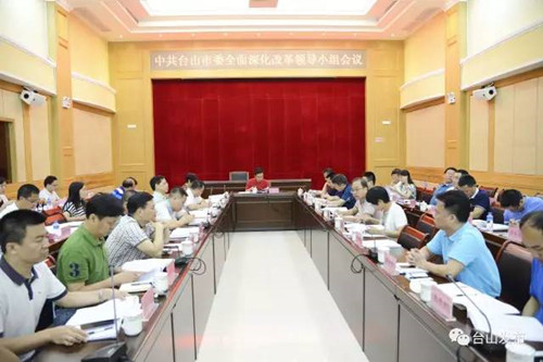 近日,市委书记、市委全面深化改革领导小组组长张磊主持召开市委全面深化改革领导小组会议,传达江门市委全面深化改革领导小组会议精神,审议并原则通过《台山市全面深化改革2017年工作要点》,总结上一阶段改革工作,研究部署下一阶段改革重点工作。