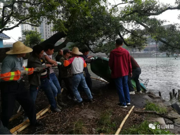 ▲清理湖面破旧游艇