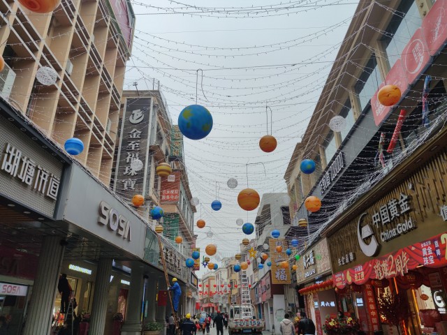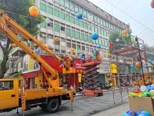 该区域还将通过悬挂布置投影灯播放台山特色景观,打造特色灯饰景观,让市民在夜间能够享受到不一样的视觉体验。在市区内公共广场、公园以及人流量较多的街道,悬挂冬瓜灯笼、南瓜灯笼、福字灯笼等各款灯笼有1.3万个,在中山路、县前路、舜德路、台西路步行街、环城南路等标志性道路悬挂国旗共220面。目前主要区域灯笼及国旗的悬挂已完成,正开展查漏补缺以及细微调整工作。