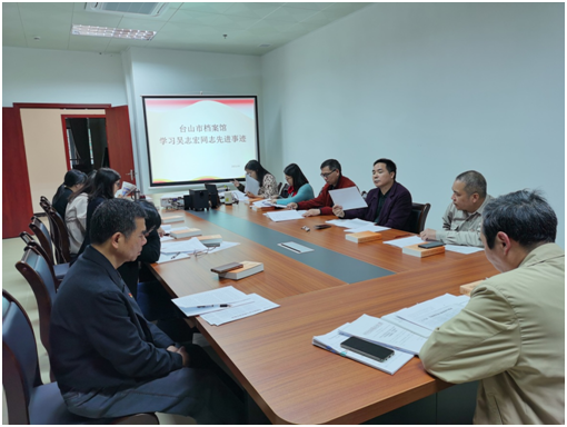 3月3日,台山市档案馆(台山市人民政府地方志办公室)召开学习宣传吴志宏同志先进事迹动员部署会。会上,馆长(主任)余焕权同志传达了省方志办《关于印发〈全省地方志系统开展“学习吴志宏、建功新时代”主题宣教活动工作方案〉的通知》精神,并就我馆(办)宣传教育活动进行部署。他要求全体干部职工结合史志、档案工作实际,学习吴志宏同志初心如磐、使命至上的坚定信念,勇于担当、真抓实干的务实作风,心系群众、公而忘私的奉献精神。在日常工作中,以吴志宏同志为榜样,热爱本职工作,耐得住寂寞,在平凡的岗位上做出不平凡的业绩。