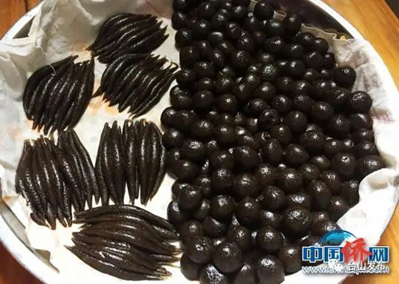 可以直接搓成汤圆状,隔水蒸熟后呈黑褐色,称之为“牛屎丸”;