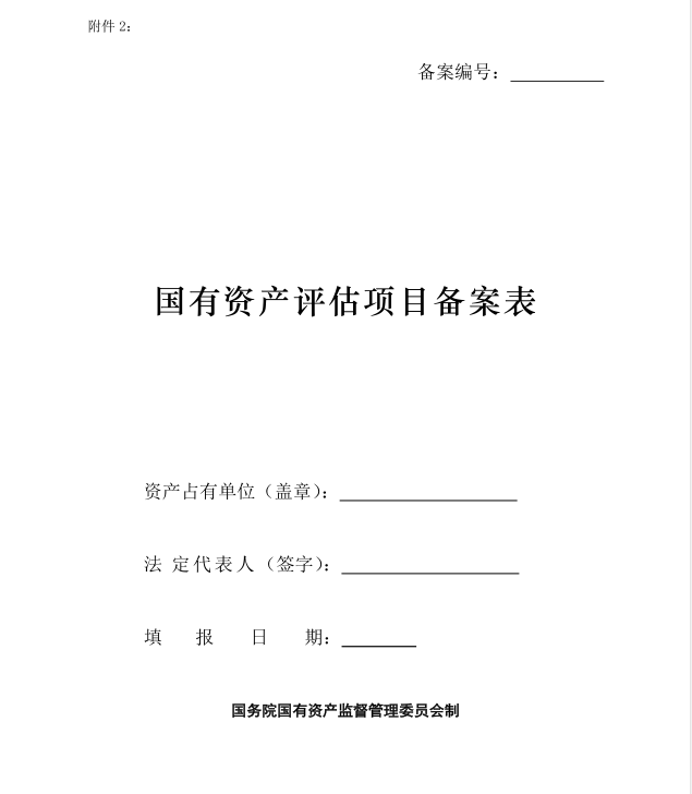 2.国有资产评估项目备案表