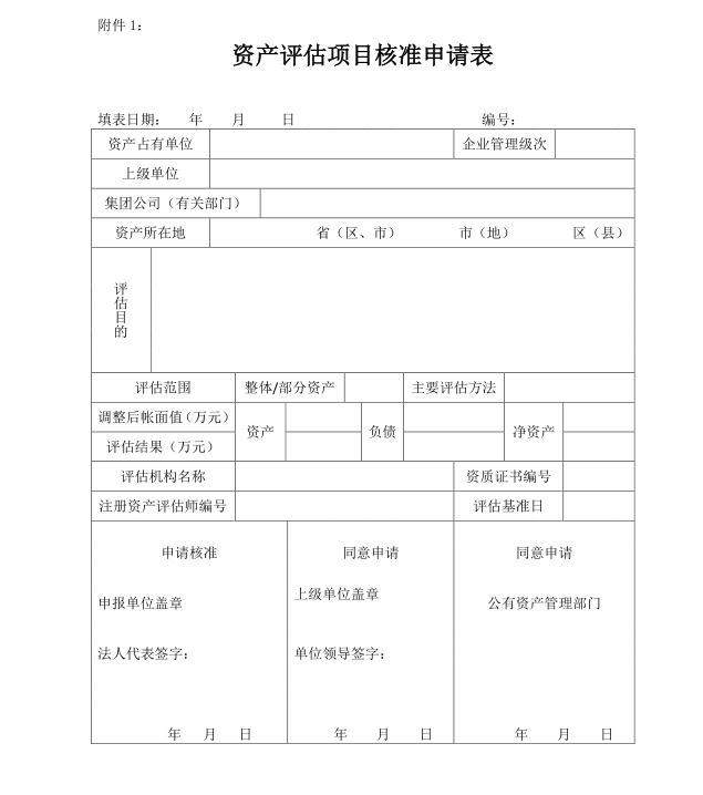 附件:1.资产评估项目核准申请表