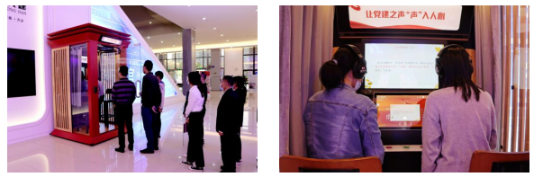 研讨结束后,党员干部们前往智慧图书馆开展诵读活动。在红色悦读亭,党员们戴上耳机、挑选配乐,激情满怀地诵读党的二十大报告金句,认真领悟每一句“金句”蕴含的精神实质和思想内涵,感悟习近平总书记的大国情怀、为民情怀,切实营造线上线下相融共学氛围。