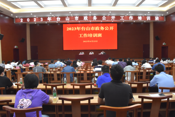 为深入贯彻落实习近平总书记关于数字中国、网络强国的重要论述精神,进一步落实国务院、省、江门及台山市委市政府关于政务公开工作的部署要求,提升我市政府网站和政务新媒体建设管理水平,4月23日下午,市政数局组织举办2023年台山市政务公开工作培训班,市府办党组成员、副主任陈军出席并讲话,各镇(街)、市有关单位近110人参加。