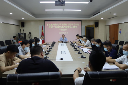 4月21日,市政数局召开传达学习贯彻习近平总书记视察广东重要讲话重要指示精神干部会议,专题传达学习贯彻习近平总书记视察广东重要讲话、重要指示精神,及省委、江门市委、台山市委有关会议精神,研究布置贯彻落实工作。